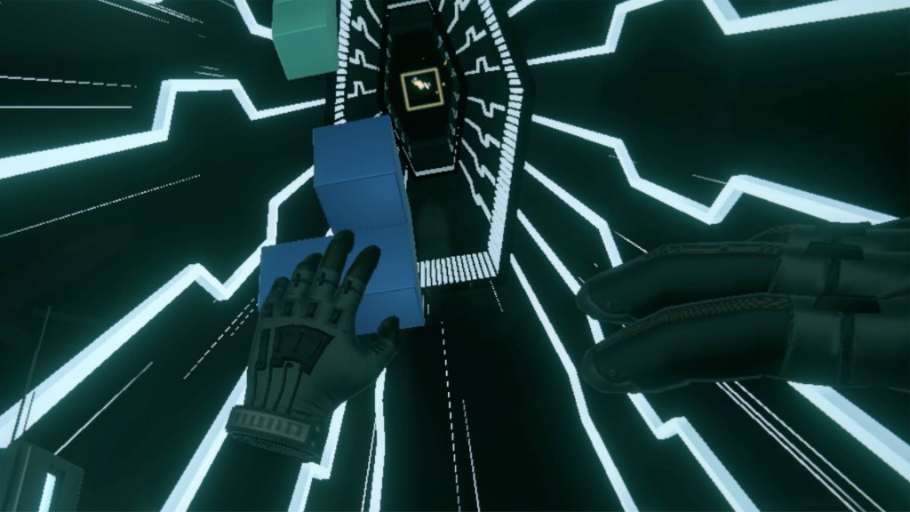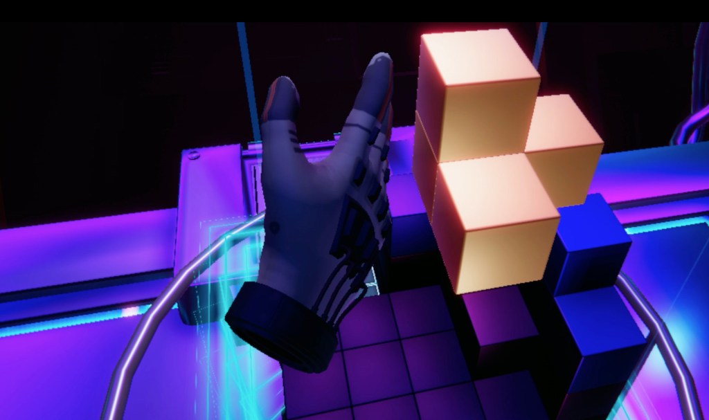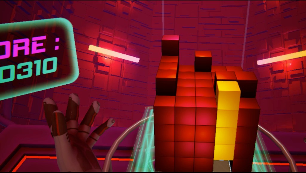 Available on Steam and the Oculus Store since 2018, Beat Blocks VR features a gameplay of space management, where the player grabs falling blocks with their VR controllers, and has to place them efficiently on a grid in order to create slabs that will disappear and give them points.