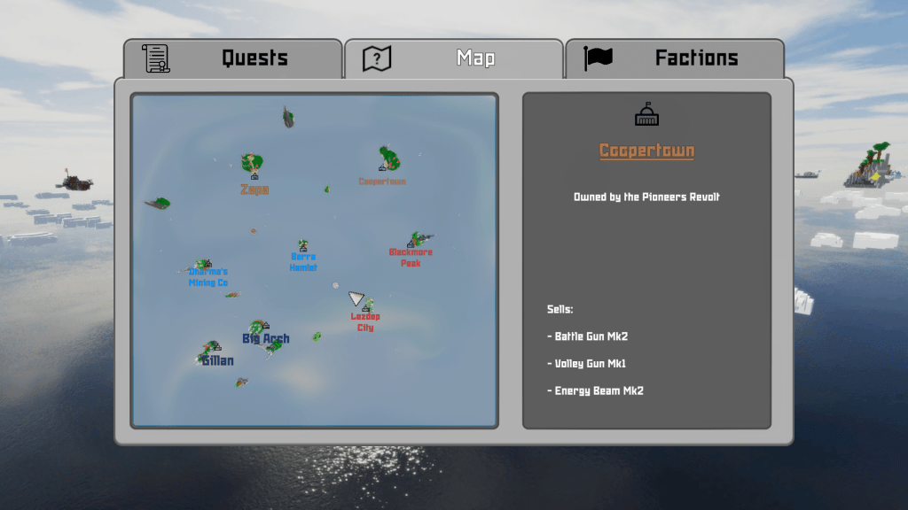 While the current build already shows the first gameplay loops (quests, weapon acquisition, increasing relations with factions to get better quests) and contains a solid amount of weapons, towns & AI ships, I would like to push the concept further to make it feel more like a fully-fledged game : features like bounty hunting quests with procedurally generated targets, cargo ships to attack or defend, customisable ship paint & flag, a reputation system, and conquerable forts are considered as later improvements.